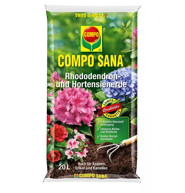 Hochwertige Spezialerde für alle Rhododendren, Hortensien, Azaleen, Eriken und Kamelien sowie andere säureliebende Pflanzen. Das auf die Bedürfnisse der Pflanzen abgestimmte Dünger-Depot wirkt sofort und gewährleistet eine bis zu 8 Wochen optimale Nährstoffversorgung. Für bestes Wurzelwachstum und die Bildung schöner, lang anhaltender Blüten sorgen der COMPO Gärtnerhumus und der COMPO Wurzelaktivator.