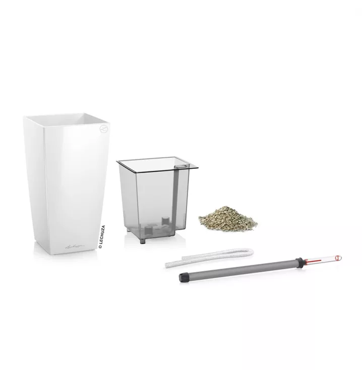 Die kubisch geformten Tischgefäße MINI-CUBI und MAXI-CUBI sind mit Blüh- oder Zimmerpflanzen bestückt eine stilvolle Dekoration für jeden Anlass. Als Blickfang in bunten Farben oder dezent in neutralen Tönen komplettieren sie kreative Arrangements auf der Festtafel oder sorgen für eine stets grüne Deko auf der Fensterbank oder auf dem Schreibtisch. Dank des integrierten Bewässerungssystems werden die Pflanzen zuverlässig mit der Menge an Wasser und Nährstoffen versorgt, die sie für ein gesundes Wachstum benötigen.