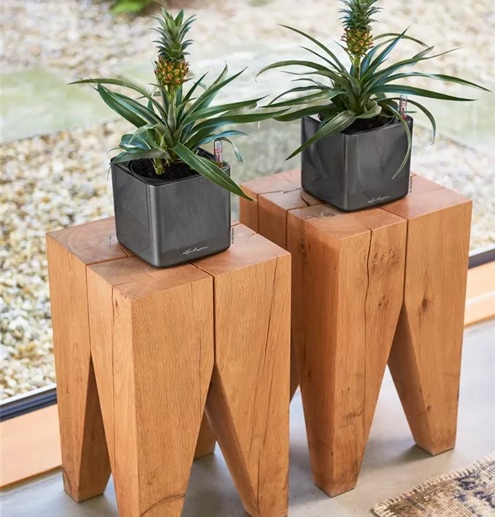 Die Hochglanz-Oberfläche ist ein moderner Kontrast zu grünen Zimmerpflanzen oder grazilen Blüten und macht CUBE Glossy Triple zu einem Pflanzgefäß, das die Blicke auf sich zieht.