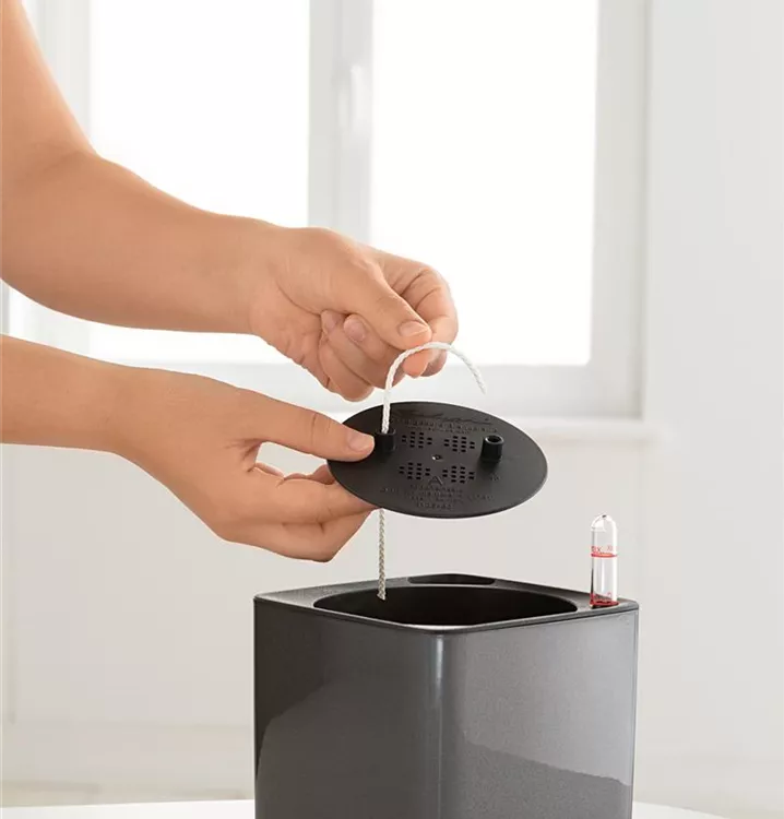Damit die Pflege der Pflanzen nicht zu stressig wird, kümmert sich das LECHUZA-Bewässerungssystem um die Versorgung der grünen Mitbewohner. In die Gefäße der Glossy-Collection können die Pflanzen ganz einfach samt Kulturtopf und ohne aufwändiges Umtopfen gesetzt werden. Ein Stick, der von unten in den Kulturtopf gesteckt wird, transportiert gleichmäßig Feuchtigkeit zu den Wurzeln. Über den Wasserstandsanzeiger kann überprüft werden, wann es wieder Zeit ist, das Reservoir aufzufüllen. So einfach kann Pflanzenpflege sein!