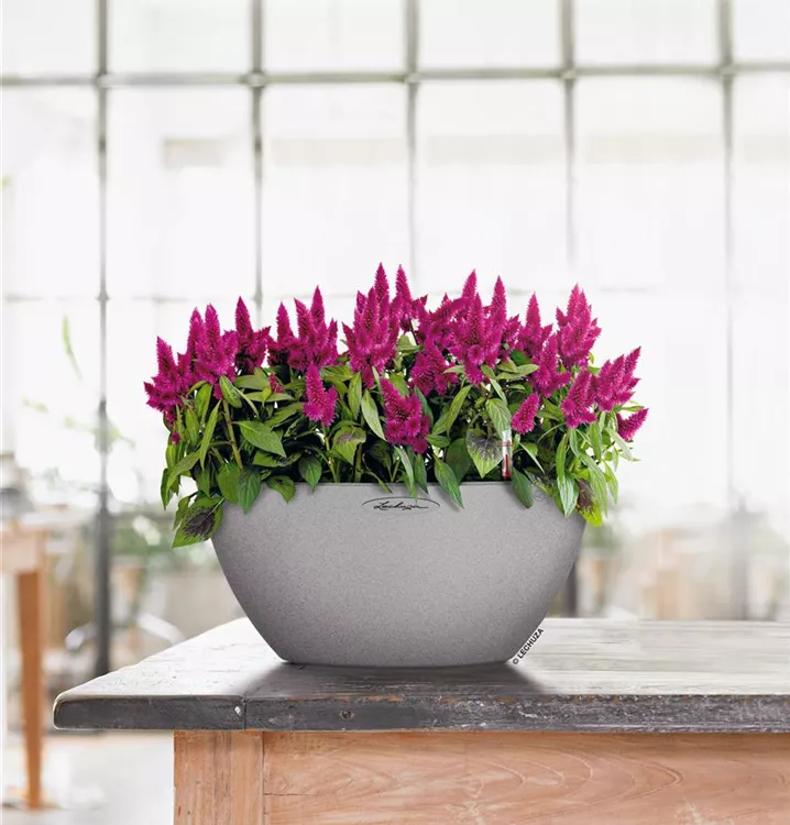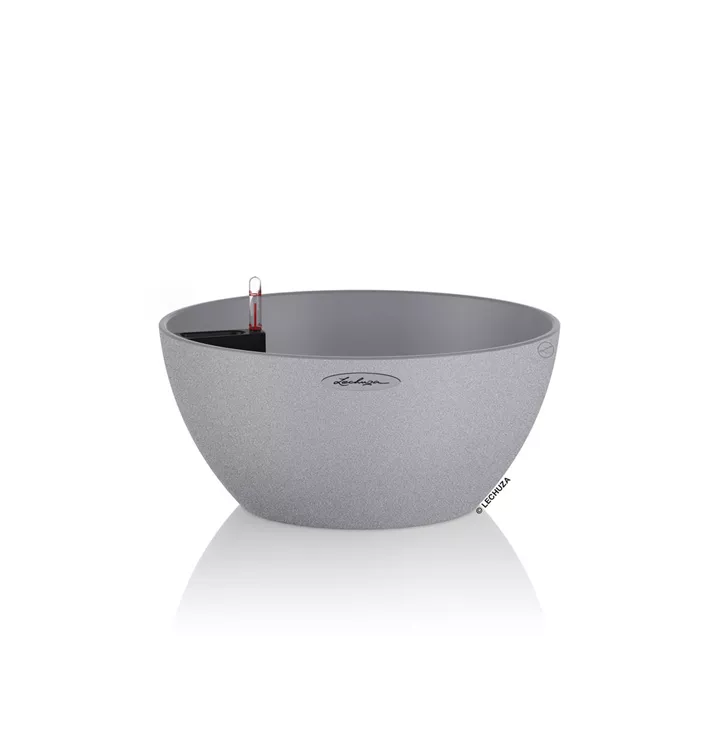 Das bewährte LECHUZA Erd-Bewässerungs-System mit 1,6 und 3 Liter Wasserreservoir versorgt die Pflanzen bedarfsgerecht mit Wasser und Nährstoffen nach dem Vorbild der Natur. Beim Einsatz im Freien kann über eine herausnehmbare Bodenschraube überschüssiges Regenwasser ablaufen. Damit sind die Pflanzen auch bei Regen vor Staunässe geschützt. Die Schale ist aus leichtem, hochwertigen Kunststoff gefertigt und lässt sich mühelos transportieren.