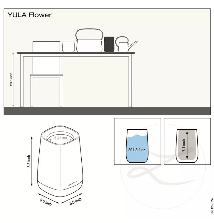 Die Vase aus der YULA-Collection von LECHUZA setzt Blumensträuße oder frisch gepflückte Blumen in Szene und passt optimal zu den passenden Gefäßen in den gleichen Farbtönen. Die YULA-Vase kann mit der modernen Form, der harmonischen Pastellfarben und der matten Oberfläche in jeden Einrichtungsstil integriert werden.