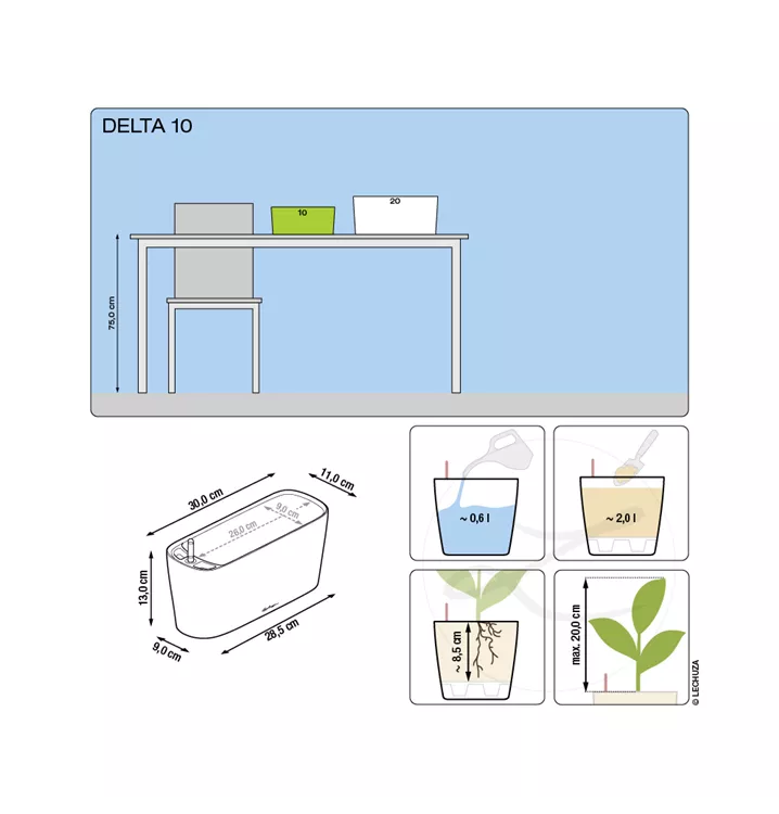 Die Pflanzgefäße DELTA 10 und 20 bieten Pflanzen viel Platz auf wenig Stellfläche. Auf schmalen Fensterbänken, Sideboards oder als ausgefallene Deko auf der Sonntagstafel setzen die schlanken Gefäße Grün- und Blühpflanzen perfekt in Szene. Mit ihrer abgerundeten, schmalen Form schmiegen sie sich auch auf kleinen Flächen perfekt an und fügen sich in fünf harmonischen Farbtönen auch in bestehende Deko-Konzepte ein.