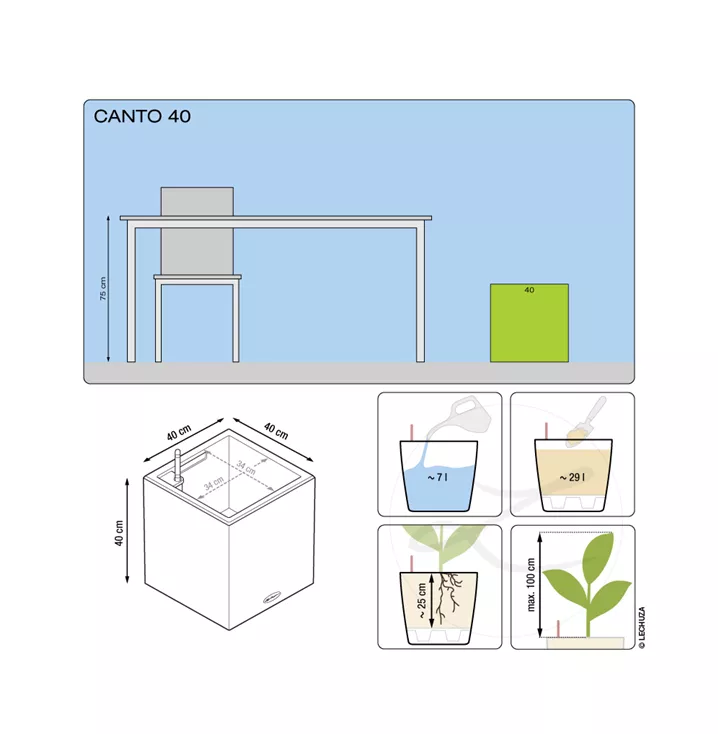 Die beiden edlen Pflanzgefäße CANTO Premium high und low bringen aufgrund ihrer zeitlosen Form und der hochglänzenden Lack-Oberfläche modernes Design in den Wohnraum. Sie setzen große Grünpflanzen wirkungsvoll in Szene und versorgen sie optimal über das integrierte Original LECHUZA-Bewässerungssystem mit bis zu 7 Litern Wasserreservoir. Die Pflanzsäule und der Pflanzwürfel wirken in Kombination besonders harmonisch und fügen sich als moderne Gestaltungselemente in jeden Einrichtungsstil ein.