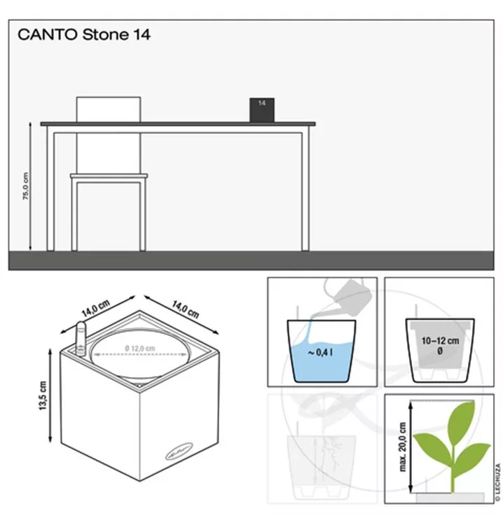 Wer klare Linien schätzt, wird CANTO Stone lieben. Die raue Natursteinoptik in drei Farbtönen bildet einen wunderbaren Kontrast zu sattem Grün und bunten Blüten. Dank gleicher Abmessungen kann der CANTO Pflanzeinsatz zwischen den beiden Modellen Würfel und Säule problemlos getauscht werden. CANTO Stone ist Gewinner des Red Dot Awards 2017, spiegelt Kernelemente zeitgemäßer Architektur wider und setzt Pflanzen attraktiv in Szene.