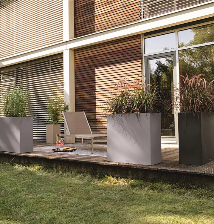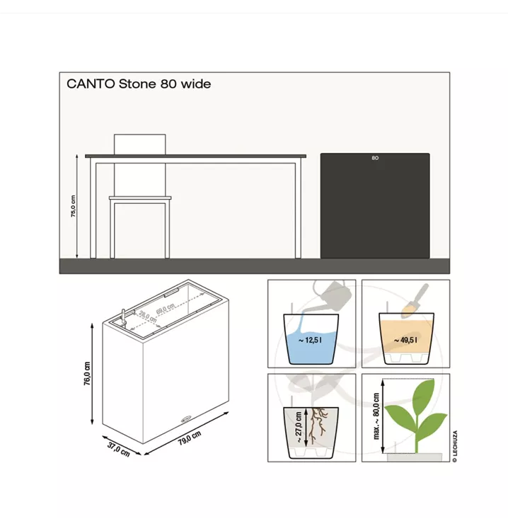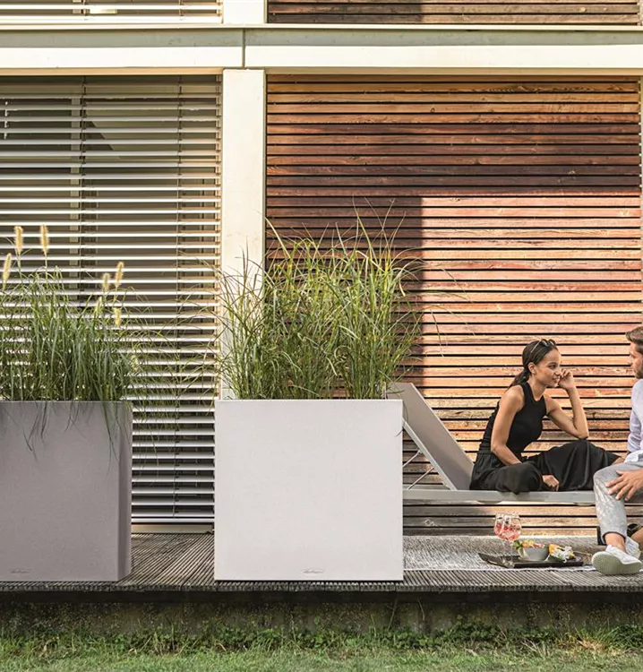 Wer klare Linien schätzt, wird CANTO Stone lieben. Die raue Natursteinoptik in drei Farbtönen bildet einen wunderbaren Kontrast zu sattem Grün und bunten Blüten. Dank gleicher Abmessungen kann der CANTO Pflanzeinsatz zwischen den beiden Modellen Würfel und Säule problemlos getauscht werden. CANTO Stone ist Gewinner des Red Dot Awards 2017, spiegelt Kernelemente zeitgemäßer Architektur wider und setzt Pflanzen attraktiv in Szene.