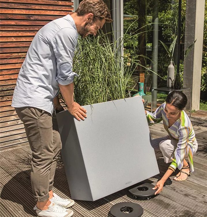 Zarte Frühblüher, üppige Sommerblüten, herbstliche Arrangements oder winterliche Bepflanzungen – die Gefäße in Naturstein-Optik bieten zu jeder Jahreszeit einen stimmungsvollen Kontrast zu den Pflanzen. Die Gefäße, die sich wie rauer, massiver Stein anfühlen, sind aus hochwertigem, wetterfestem Kunststoff und daher leicht zu transportieren. Und das LECHUZA-Bewässerungssystem übernimmt wie gewohnt die optimale Wasserversorgung der Pflanzen. Einfacher kann Pflanzenpflege nicht sein!