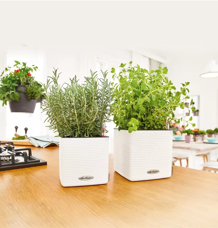 Kräuterfans aufgepasst: Mit LECHUZA gedeiht würziges Grün das ganze Jahr über problemlos auf der Fensterbank. Nach dem großen Erfolg des CUBE Color 14 mit Stick-Bewässerungssystem, ist der dekorative Kräuterwürfel in zarter Gewebe-Optik auch eine Nummer größer erhältlich. Im CUBE Color 16 haben Kulturtöpfe mit einem Durchmesser von 13 bis 15 Zentimetern Platz – ganz ohne Umtopfen – perfekt für die beliebten italienischen Küchenkräuter.