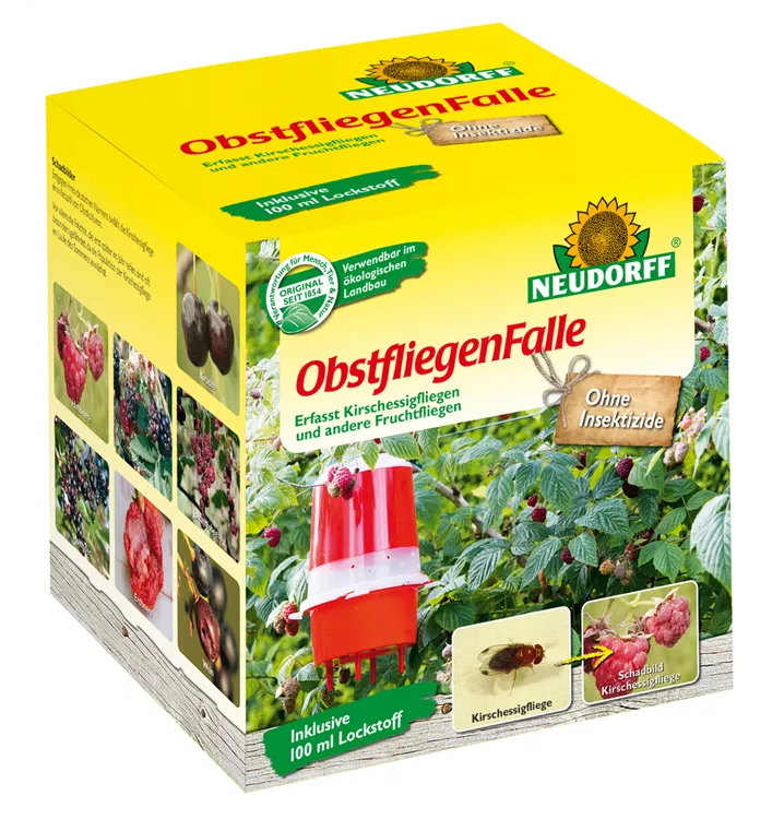 Falle zur sicheren Erfassung (Monitoring) der Kirschessigfliege und anderen Fruchtfliegen. Ideal für den Einsatz bei Kirschen, Wein, Himbeeren etc.