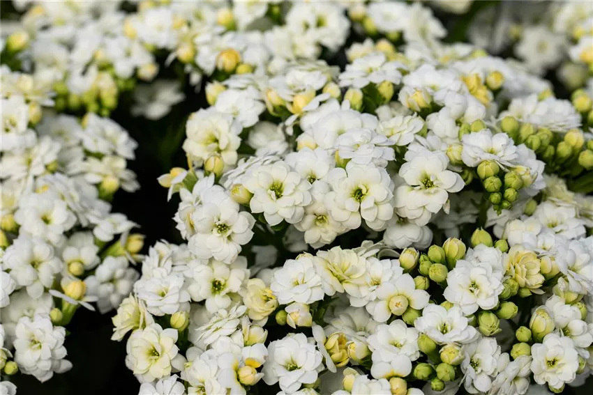 Kalanchoe blossfeldiana 'White Rox' Blühende Kakteen und Sukkulenten? Die gibt es! Und zwar in den unterschiedlichsten Formen und Farben, sodass auch Blütenfreunde bei diesen Pflanzen voll auf ihre Kosten kommen Allen voran das Flammende Käthchen, das seinem Namen wirklich alle Ehre macht. Ursprünglich gab es die Sukkulente mit feuerroten Blüten, die namensgebend waren. Mittlerweile sind aber auch andere Blütenfarben erhältlich und so ist wirklich für jeden Geschmack etwas dabei. Auch Hauswurz kann mit beeindruckenden Blüten überzeugen. Diese sind ein echtes Highlight, denn sie bilden sich an langen Trieben, die schnell mal mehrere Zentimeter lang werden können. Und wer es ein bisschen stacheliger mag, der kommt mit den Blüten vom Christusdorn auf seine Kosten. Die roten, rosa oder weißen Blüten sind optisch ein echtes Highlight und sorgen für Abwechslung in den eigenen vier Wänden. Und was das schönste an all diesen exotischen Blüten von Kakteen und Sukkulenten ist? Sie zeigen sich auch bei Anfängern, denn diese Pflanzen sind robust, pflegeleicht und verzeihen auch den ein oder anderen kleinen Pflegefehler. Wer da noch überlegt, ob Kakteen und Sukkulenten wirklich zu Hause einziehen sollten, der wird beim Anblick der Pflanzen vom Gegenteil überzeugt!