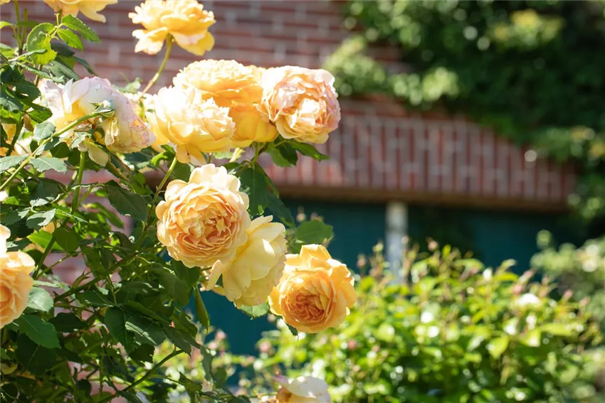 Englische Rose, apricot Wer das Rosen zurückschneiden im Frühjahr vornehmen möchte, der sollte drei goldene Regeln beachten, damit die Pflanzen auch von dem Rückschnitt profitieren. Grundsätzlich gilt bei allen Rosenarten: man schneidet immer oberhalb einer nach außen zeigender Knospe oder einem Augenpaar. Außerdem sollte man darauf achten, dass die Schnittfläche nicht gerade, sondern schräg angelegt ist. Das sorgt dafür, dass Wasser besser abfließen kann und sich nicht an der Schnittkante sammelt. Anders als beim Pflanzschnitt, geht man im Frühjahr radikaler vor. Jetzt werden alle Teile der Rose abgeschnitten, die das Wachstum der Pflanze beeinträchtigen. Das betrifft vor allem abgestorbene Teile, die eventuell den Winter nicht überlebt haben. Das tote Holz entfernt man entweder direkt an der Basis oder an der Stelle, an der sich wieder grünes und gesundes Holz abzeichnet. Auch kranke oder verkümmerte Triebe werden entfernt und mit einer Schere abgeschnitten. Wichtig ist auch, beim Rosen zurückschneiden im Frühjahr Triebe abzuschneiden, die zu dicht wachsen und der Pflanze keine Luft geben. Beim Auslichten werden schräg wachsende Triebe ebenfalls mit der Gartenschere entfernt.