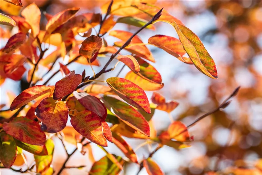 Amelanchier lamarckii Mit den schönsten Gehölzen für den goldenen Herbst kann man sich bunte Farben in den Garten holen. Von Rot und Orange bis Gelb und Purpurrot ist alles dabei und die Gehölze zeigen in der bunten Jahreszeit, warum sie ihren Titel verdient haben. Viele Gartenfreunde freuen sich zum Ende des Jahres über die vielen bunten Blätter, die den Garten zieren und auch auf dem Balkon oder auf der Terrasse kann man sich die bunten Gehölze halten. Viele von ihnen wachsen nicht sehr hoch und können auch im Kübel kultiviert werden. Auf einen bunten und farbenfrohen Herbst muss man mit den schönsten Gehölzen für den goldenen Herbst also nicht verzichten, auch, wenn man keinen großen Garten zur Verfügung hat. Damit lässt sich das Ende der Gartensaison stilvoll aufklingen und man kann noch einmal den Sommer ein bisschen verlängern – zumindest optisch. Und auch, wenn das Laub im Herbst einigen Gartenbesitzern Arbeit bereitet, ist das Schauspiel es allemal wert. Und wenn nach dem Herbst die bunte Zeit vorbei ist, kann man sich im Frühjahr bei vielen Gehölzen wieder auf frisches Grün und zahlreiche Blüten freuen.