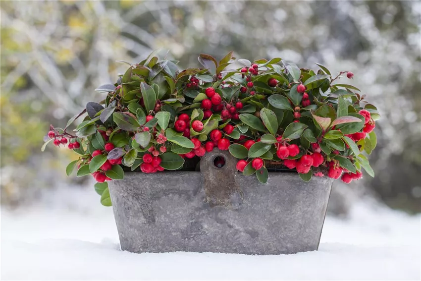 Gaultheria procumbens Wenn es um die Top 10 der beliebtesten Winterpflanzen für Garten und Balkon geht, dann steht ein Kandidat ganz oben, denn er zählt auch im Sommer zu den absoluten Klassikern in der Beet- und Balkon-Saison. Geranien sind der absolute Klassiker und auch, wenn sie eher im Sommer bekannt sind: Es gibt auch winterharte Sorten, die als beliebte Winterpflanzen für Garten und Balkon eine richtig gute Figur machen. Dabei ist Geranie nicht gleich Geranie, denn der Klassiker für den Sommer, Pelargonie, hält tatsächlich keine Minusgrade aus. Storchschnäbel hingegen werden im Volksmund auch oft als Geranien bezeichnet und halten den kalten Temperaturen im Winter stand. Besonders in Gärten sind Storchschnäbel daher häufiger verbreitet als Pelargonien, denn sie müssen nicht überwintert werden. Und wenn wir schon beim Thema sind, denkt man ja bei winterharten Balkonpflanzen auch nicht direkt an Fuchsien. Aber auch hier gibt es Ausnahmen. Die Scharlachfuchsie, auch Freilandfuchsie genannt, eignet sich hervorragend als Winterpflanze für Garten und Balkon. Im Gegensatz zu den anderen Fuchsien ist sie winterhart und robust, überzeugt aber trotzdem mit gleichen wunderschönen Blüten und eignet sich als ganzjährige Balkon- oder Gartenbepflanzung. Und richtig grün wird es mit Irischem Efeu. Das eignet sich übrigens auch hervorragend als Sichtschutz, wenn man es am Balkongeländer ranken lässt. Die grünen Blätter bleiben das ganze Jahr an der Pflanze und sorgen damit auch im Winter für farbenfrohe und frische Akzente.