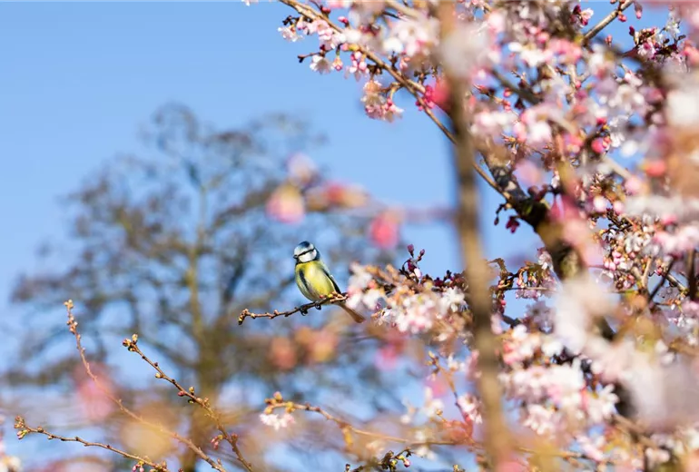 Ein Kirschbaum, der Süßkirschen trägt, erhält mit wachsender Größe in den meisten Fällen auch eine ausladende Krone. Außerdem können Süßkirschen-Bäume bis zu 30 Meter hochwachsen – Sauerkirschen-Bäume erreichen höchstens eine Wuchshöhe von 8 – 11 Metern. Kleinere veredelte Kirschsorten eigenen sich für jeden Garten. Süß- und Sauerkirschen gehören zur Familie der Rosengewächse. Ihre Blüten üben daher einen besonderen Reiz auf Bienen, Hummeln und andere Insekten aus, die für die Befruchtung im Garten zuständig sind. Wer schon einmal einen Kirschbaum in seiner Blütenpracht gesehen hat, kann sich seinem Zauber nicht entziehen. Die Kirschblüte mit bis zu 1 Million Blüten pro Baum ist wunderschön und wird in Japan mit dem speziellen Kirschblütenfest „Hanami“ gefeiert. Ein Kirschbaum blüht früh im Mai und bis in den Juni hinein.