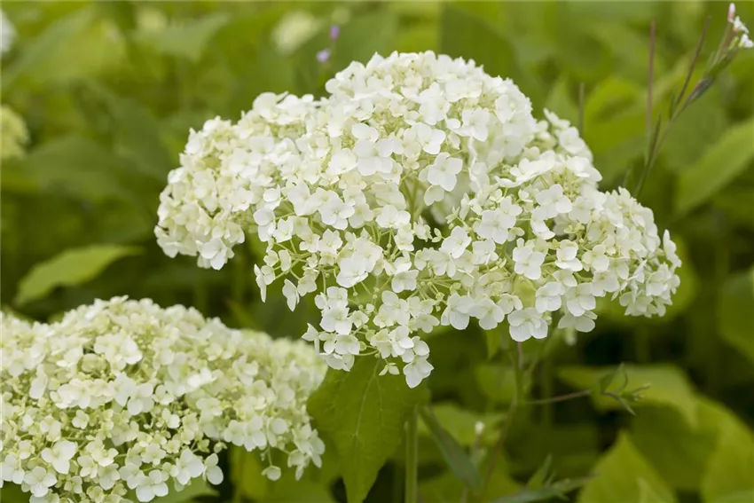 Hydrangea arborescens Hortensien verblüffen mit ihrer vielfältigen Farbenpracht und treten innerhalb des Gartens als tolle Eye-Catcher in Erscheinung.