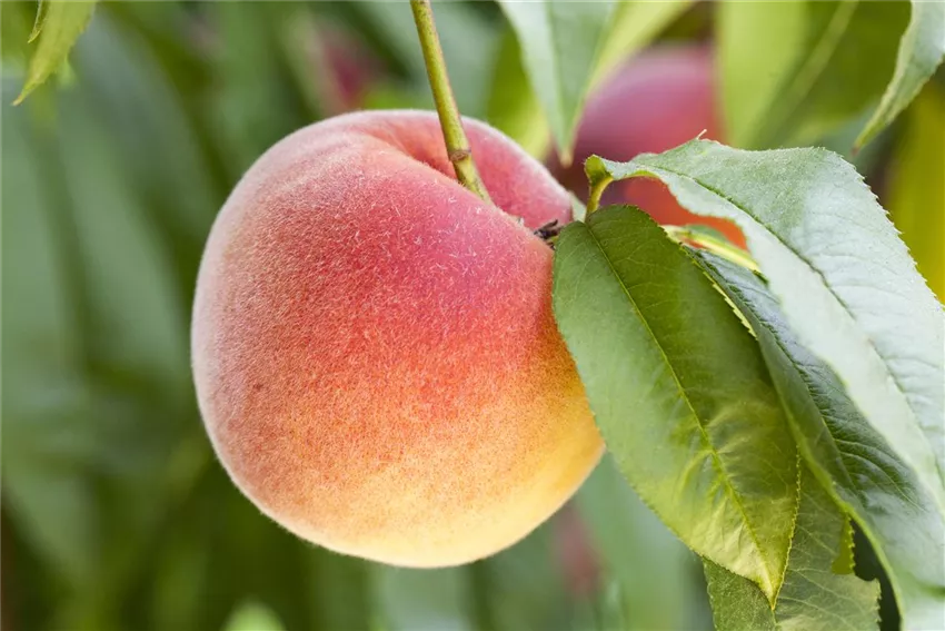 Wer ein schmackhaftes und saftiges Obst im Sommer ernten und genießen möchte, der sollte sich für einen Pfirsichbaum entscheiden. Pfirsiche können direkt vom Baum gegessen werden, lassen sich aber auch gut und vielfältig verarbeiten wie zum Beispiel als Saft, Marmelade oder als Kuchenbelag. Der Pfirsichbaum stammt ursprünglich aus Asien, ist aber bereits seit dem Mittelalter nicht nur im gesamten Orient, sondern auch im Mittelmeerraum als begehrtes Obstgehölz verbreitet. Seit dem 19. Jahrhundert sind Pfirsichbäume auch zunehmend in den Gärten Mitteleuropas zu finden. Bei den ebenfalls beliebten Nektarinen, die eine glatte Schale haben, handelt es sich um eine Variante des Pfirsichs. Wer einen sonnigen Platz im Garten hat, der wird mit etwas Pflege viele leckere Pfirsiche ernten können.