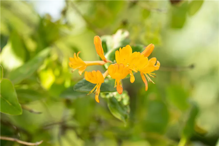 Lonicera tellmanniana Wer beim Kletterpflanzen pflegen schon von Anfang an auf die passende Behandlung achtet, der kann schon beim Einpflanzen viel richtig machen. Denn nicht umsonst heißt es ja so oft: gut gepflanzt ist halb gepflegt. Das gilt auch für Kletterpflanzen. Schon beim Einpflanzen sollte man auf den passenden Standort und die richtigen Bedingungen im Boden achten. Kletterpflanzen freuen sich in der Regel über einen lockeren und nährstoffreichen Boden. Wer also schwere Böden im Garten vorfindet, der kann diese mit Kies oder Sand auflockern. Das ist wichtig, damit Gieß- und Regenwasser besser abfließen kann. Wie die meisten anderen Pflanzen auch, mögen Kletterpflanzen keine Staunässe. Wer also Kletterpflanzen im Kübel halten will, der sollte wissen, dass zum Kletterpflanzen pflegen auch gehört, das passende Gefäß auszusuchen. Und das sollte in jedem Fall ein Abzugsloch haben, damit überschüssiges Wasser abfließen kann. Beim Einpflanzen werden die Wurzelballen der Pflanzen vorab für mindestens 15 Minuten in einen Eimer mit Wasser getaucht. Wenn keine Blasen mehr aufsteigen, haben sich die Wurzeln ausreichend mit Wasser vollgesogen und die Pflanzen dürfen in die Erde. Dabei sollte das Pflanzloch doppelt so groß sein, wie der Wurzelballen. Kletterpflanzen breiten nämlich nicht nur die oberirdischen Triebe aus, sondern mit Vorliebe auch ihre Wurzeln.