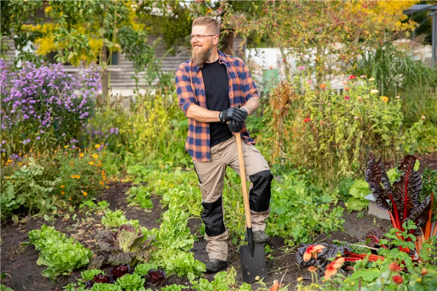 Gartengeräte - Mann mit Spaten Wer einen Nutzgarten sein Eigenen nennen kann, der sollte auf eine gute Mischkultur mit Gemüse und Kräutern achten. Denn die fördert eine ertragreiche Ernte. Was für viele mittlerweile ein Begriff ist, kommt ursprünglich direkt aus der Natur. Warum also sollte es dann nicht die beste Möglichkeit sein, Gemüse und Kräuter im eigenen Garten anzubauen und zu ernten?