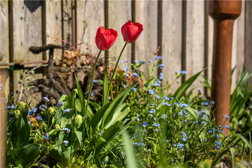 Blumenbeet mit Tulpen Vor allem die Frühblüher sind es, die ihr wahres Geheimnis im Winter zeigen. Nach der Blüte sterben die oberirdischen Pflanzenteile ab. Aber noch bevor das passiert, zieht die Zwiebel daraus ihre Vorteile. Und das im wahrsten Sinne des Wortes, denn sie lagert die Flüssigkeit und die Nährstoffe aus den oberirdischen Teilen ein und speichert diese. Das ist dann die Grundlage für den Neuaustrieb im nächsten Frühjahr. Und wo es vielen Pflanzen im Garten im Winter zu kalt wird, freut sich die Blumenzwiebeln von Narzisse, Tulpe und Co. über die frischen Temperaturen, denn sie benötigen einen Kältereiz, damit sie im Frühjahr wieder austreiben. Das ist auch der Grund, warum sie bis spätestens Ende Dezember in die Erde gesetzt werden sollten. Und wer das einmal vergessen hat, der kann den Winter auch im Gefrierschrank simulieren und die Blumenzwiebeln dann einfach vorziehen. So zeigen sich dann auch im Frühjahr die schönsten Blüten und läuten den Frühling ein. Das sorgt unter anderem auch dafür, dass sie so pflegeleicht sind. Einmal gepflanzt treiben sie jedes Jahr aufs Neue wieder aus. Ziemlich praktisch, oder?