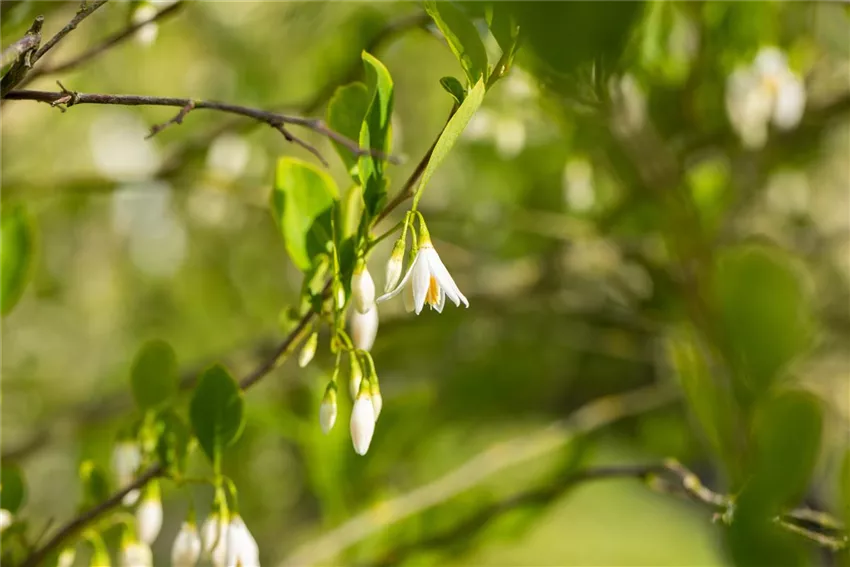 Styrax americanus Auch unter den Laubgehölzen gibt es den ein oder anderen Kandidaten der sich gut als Begleitpflanze für Blumenzwiebeln und -knollen macht. Vor allem immergrüne Gehölze, die auch nach der Blüte der Zwiebeln und Knollen noch für Farbkleckse sorgen. So sind Kirschlorbeer, Buchsbaum und Liguster eine gute Wahl. Aber auch frühblühende Laubgehölze wie Forsythie oder Magnolie machen neben Tulpe, Narzisse und Co. eine gute Figur. Vor allem aber sollte man die Laubgehölze in den Hintergrund und die Zwiebeln und Knollen in den Vordergrund pflanzen. Denn die holzigen Kandidaten werden in der Regel viel größer und würden die Sicht auf die wunderschönen Blüten verwehren. Vorsicht bei Unterpflanzung: Sind die Laubgehölze zu groß, bekommen die Zwiebeln und Knollen zu wenig Licht. Viele Kandidaten fühlen sich aber auch im Halbschatten wohl und können daher ideal als Highlight zwischen die Gehölze gesetzt werden. Auch, aber vor allem bei Laubgehölzen als Begleitpflanzen für Blumenzwiebeln und -knollen gilt: Auf Pflanzabstände achten. Die Wurzeln der Gehölze können sehr groß werden und den kleinen Zwiebeln Konkurrenz machen.