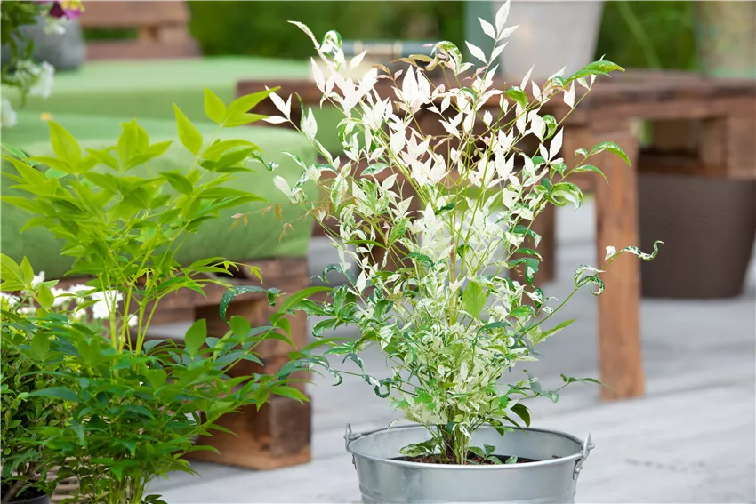 Nandina domestica 'Twilight' Wer über Besonderheiten beim Bambus nachdenkt, dem kommen wahrscheinlich nicht direkt Blüten in den Sinn. Das ist auch nicht weiter verwunderlich, denn die vielen Bambus-Arten sind für ihre grünen Blätter und die besonderen Halme bekannt. Aber um die Bambus-Blüte ranken sich dennoch einige Geschichten. Ein Schirmbambus blüht nur alle 70 Jahre und nach der Blüte stirbt die gesamte Pflanze ab. Der Flachrohrbambus blüht deutlich öfter und hat auch bessere Überlebenschancen, wirklich auf eine Blüte verlassen, kann man sich als Besitzer aber nicht. Die besonderen Blätter sind für viele Bambusfreunde aber deutlich interessanter, als die seltenen Blüten. Denn die zeigen sich auch im Winter in einem saftigen Grün und bei den Besonderheiten beim Bambus zeigen sie, dass fernöstliche Schönheiten nicht immer pflegeintensiv und schwer zu händeln sind. Denn diese Süßgräser machen sowohl im Beet, als auch im Kübel eine gute Figur und können mit ihrem besonderen Aussehen punkten. Vor allem als Hecke wird Bambus gerne eingesetzt, denn er bietet Abwechslung zu den klassischen Heckenpflanzen, die sonst bei der Gartengestaltung verwendet werden. Ein Sichtschutz auf dem Balkon lässt sich damit übrigens auch hervorragend kreieren.