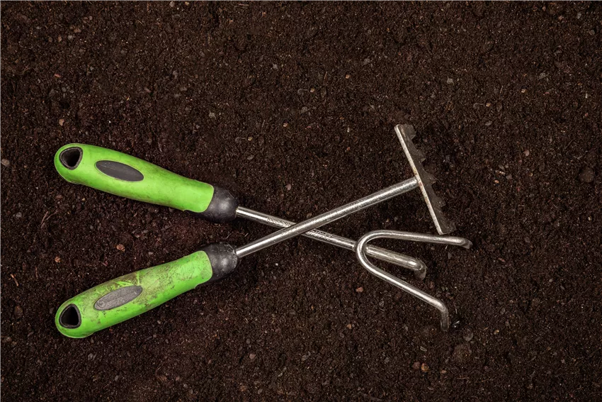 Neben dem Spaten dürfen unter dem Zubehör zum Gärtnern auch eine Schaufel, eine Grabegabel sowie eine Hacke auf keinen Fall fehlen. Häufig hat das Zubehör zum Gärtnern einen Stiel aus Holz. Dieser hat den Vorteil, dass er bei der Arbeit dämpfend wirkt. Außerdem kann er meist unkomplizierter ersetzt werden. Bei der Auswahl einer geeigneten Grabegabel empfiehlt es sich darauf zu achten, dass sie entweder aus Eisen oder aus rostfreiem Stahl gefertigt wurde, was für eine lange Haltbarkeit sorgt. Zur Glättung des Bodens wird eine Hacke verwendet, die es mit verschiedenen Hackenblättern gibt. Die Wahl des richtigen Hackenblatts ist von der Bodenart abhängig, die damit bearbeitet werden soll. Handelt es sich um einen schweren Boden, sollte man ein kleineres Hackenblatt nehmen.