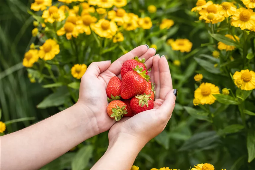 Frau hält Erdbeeren in den Händen Das Schönste am Sommer ist wohl die Erntezeit. Denn viele Früchte und Gemüsesorten sind jetzt reif und können geerntet werden. Die Gartenarbeit im Sommer ist also vor allem auch lecker und auch noch richtig gesund. Erdbeeren, Himbeeren, Kirschen und Co. können direkt von der Pflanze genascht oder anschließend verarbeitet werden. Auch Gemüse wie Tomaten oder Gurken können auf dem Speiseplan stehen und frische Kräuter sorgen für besondere Aromen bei der Gartenarbeit im Sommer. Wer ein richtiges Gemüsebeet hat, wird hier voll auf seine Kosten kommen. Außerdem kann man auch jetzt noch Gemüse wie Radieschen oder Salat aussäen und damit die Erntezeit verlängern. Außerdem regt das Ernten der reifen Früchte die Produktion neuer Früchte an. Die Pflanzen werden damit ertragreicher und liefern zuverlässig eine lange und erfolgreiche Ernte. Wer bei der Gartenarbeit im Sommer dann auch noch regelmäßig Beikräuter entfernt, kann den Pflanzen zusätzliche Energie schenken und damit noch mehr leckere Früchte ernten.