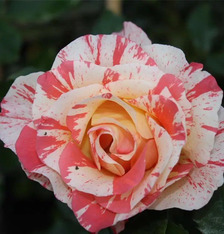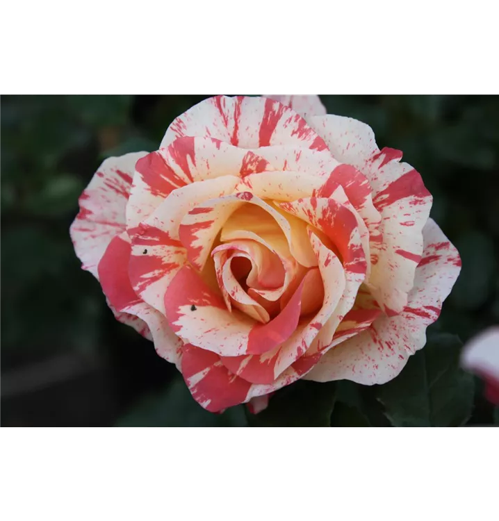 Die mehrfarbigen, schalenförmigen Blüten der Beetrose 'Alfred Sisley'® erscheinen in Dolden von Juni bis September. Diese sind angenehm duftend.