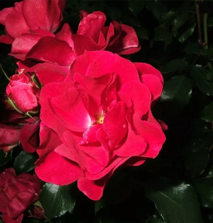 Die Beetrose 'Rotilia'® (Rosa) ist eine reichblühende Rose, die im Garten eine besondere Rolle spielt. Die zahlreichen halbgefüllten Blüten sind dunkelrot und erscheinen von Juni bis September. Ihr wunderbarer Duft entfaltet sich besonders an sonnigen, warmen Tagen. Mit den richtigen Begleitern an ihrer Seite, kommt die Königin der Blumen besonders gut zur Geltung. Niedrige Stauden, Lavendel und Salbei eignen sich ganz gut für diese Zwecke.
