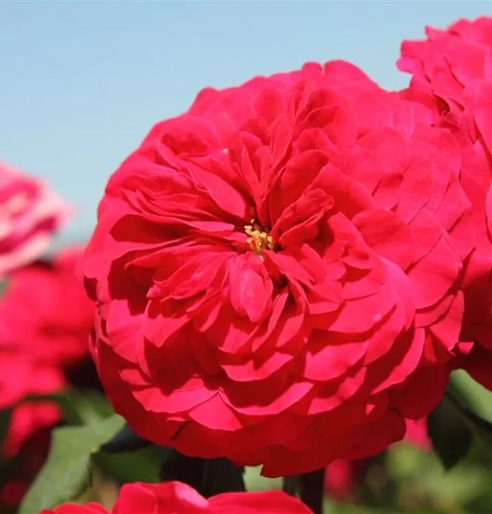 Die Beetrose 'Rouge Meilove'® (Rosa) ist eine reichblühende Rose, die im Garten eine besondere Rolle spielt. Die zahlreichen gefüllten Blüten sind rot und erscheinen von Juni bis September. Ihr wunderbarer Duft entfaltet sich besonders an sonnigen, warmen Tagen. Mit den richtigen Begleitern an ihrer Seite, kommt die Königin der Blumen besonders gut zur Geltung. Niedrige Stauden, Lavendel und Salbei eignen sich ganz gut für diese Zwecke.