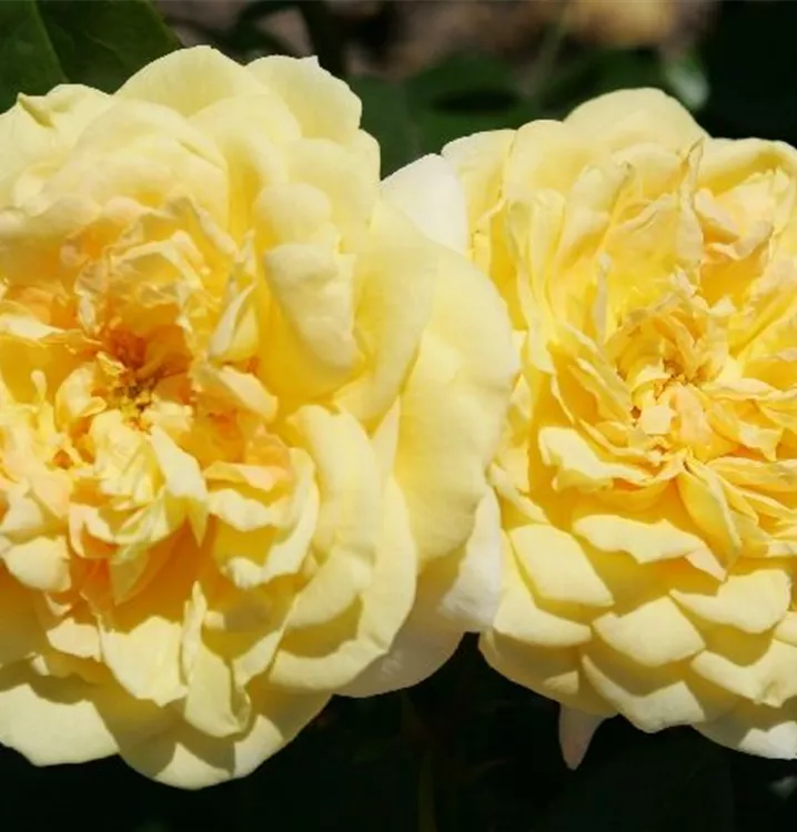 Die hellgelben, starkgefüllten, schalenförmigen Blüten der Beetrose 'Sunstar'® erscheinen in Dolden von Juni bis September. Diese werden etwa 6 - 7 cm groß und sind leicht duftend.