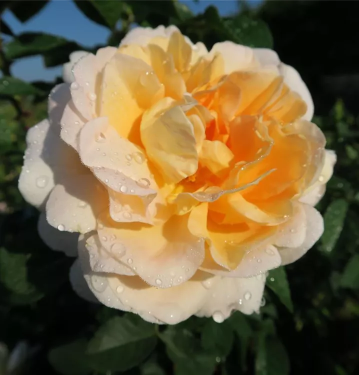 Die apricotfarbenen, schalenförmigen Blüten sind gefüllt und erscheinen von Juni bis Oktober. Diese werden etwa 6 - 8 cm groß und sind angenehm duftend.