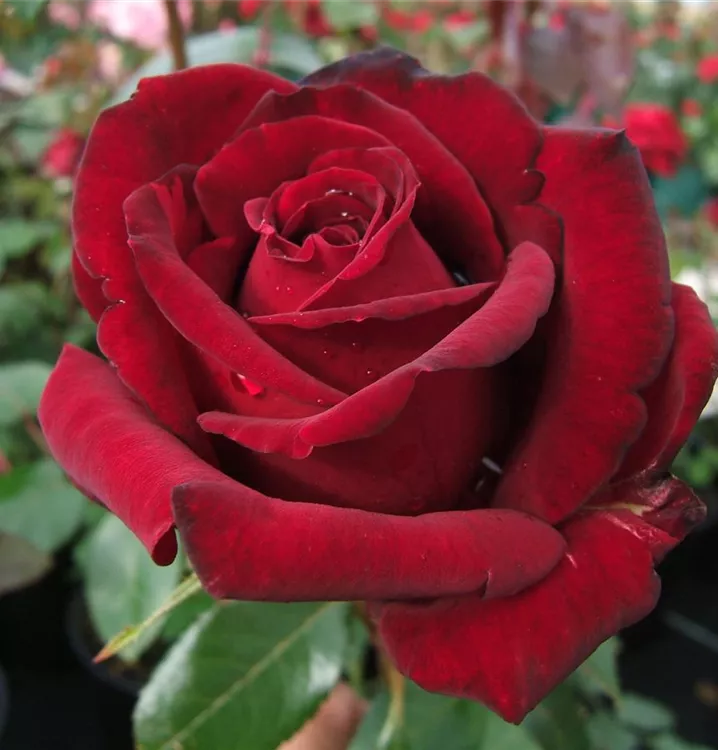 Die Edelrose 'Ingrid Bergmann'® (Rosa) ist eine reichblühende Rose, die im Garten eine besondere Rolle spielt. Die zahlreichen gefüllten Blüten sind rot und erscheinen von Juni bis Oktober. Ihr wunderbarer Duft entfaltet sich besonders an sonnigen, warmen Tagen. Mit den richtigen Begleitern an ihrer Seite, kommt die Königin der Blumen besonders gut zur Geltung. Niedrige Stauden, Lavendel und Salbei eignen sich ganz gut für diese Zwecke.