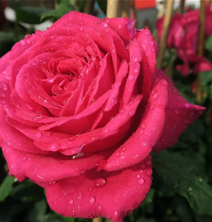 Die Edelrose 'Johann Wolfgang von Goethe Rose'® (Rosa) ist eine reichblühende Rose, die im Garten eine besondere Rolle spielt. Die zahlreichen gefüllten Blüten sind purpurrot und erscheinen von Juni bis Oktober. Ihr wunderbarer Duft entfaltet sich besonders an sonnigen, warmen Tagen. Mit den richtigen Begleitern an ihrer Seite, kommt die Königin der Blumen besonders gut zur Geltung. Niedrige Stauden, Lavendel und Salbei eignen sich ganz gut für diese Zwecke.