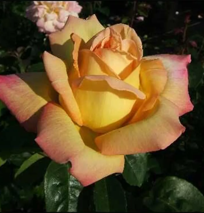 Die Edelrose 'Peace' (Rosa) ist eine reichblühende Rose, die im Garten eine besondere Rolle spielt. Die zahlreichen gefüllten Blüten sind apricot und erscheinen von Juni bis Oktober. Ihr wunderbarer Duft entfaltet sich besonders an sonnigen, warmen Tagen. Mit den richtigen Begleitern an ihrer Seite, kommt die Königin der Blumen besonders gut zur Geltung. Niedrige Stauden, Lavendel und Salbei eignen sich ganz gut für diese Zwecke.