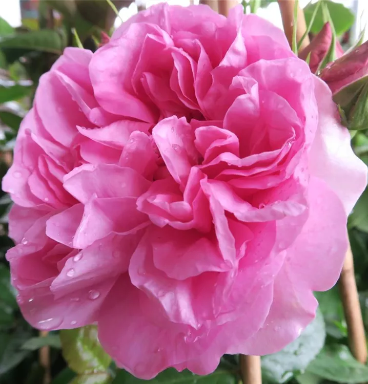Die dunkelrosafarbenen, schalenförmigen Blüten sind starkgefüllt und erscheinen von Juni bis Oktober. Diese werden etwa 10 - 12 cm groß und sind stark duftend.
