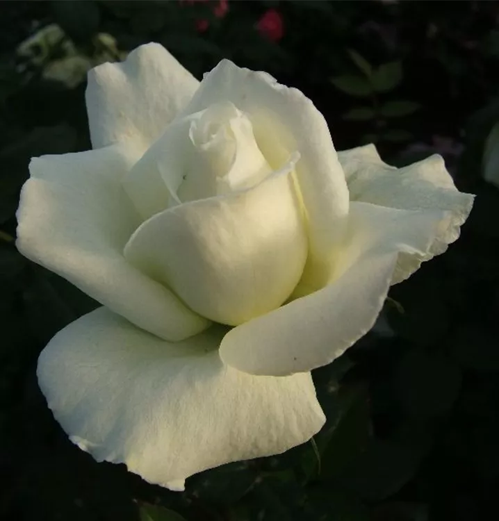 Die Edelrose 'Roy Black'® (Rosa) ist eine reichblühende Rose, die im Garten eine besondere Rolle spielt. Die zahlreichen gefüllten Blüten sind weiß und erscheinen von Juni bis Oktober. Ihr wunderbarer Duft entfaltet sich besonders an sonnigen, warmen Tagen. Mit den richtigen Begleitern an ihrer Seite, kommt die Königin der Blumen besonders gut zur Geltung. Niedrige Stauden, Lavendel und Salbei eignen sich ganz gut für diese Zwecke.