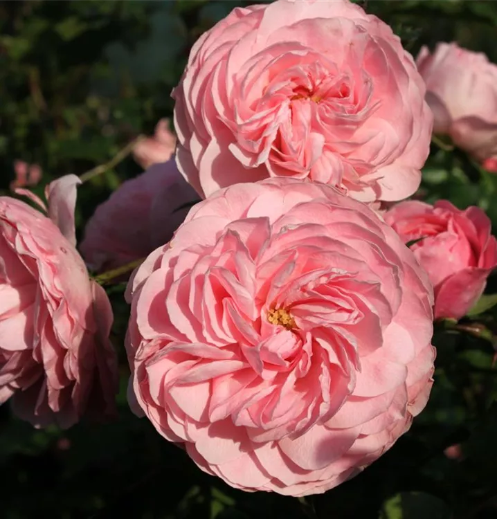Die rosafarbenen, gefüllten, schalenförmigen Blüten der Beetrose 'Larissa'® erscheinen in Dolden von Juni bis September. Diese werden etwa 4 - 5 cm groß.