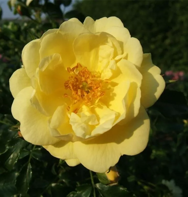 Die Bodendeckerrose 'Sunny Rose'® (Rosa) ist eine reichblühende Rose, die im Garten eine besondere Rolle spielt. Die gefüllten Blüten sind hellgelb und erscheinen zahlreich von Juni bis Oktober. Mit den richtigen Begleitern an ihrer Seite, kommt die Königin der Blumen besonders gut zur Geltung. Niedrige Stauden, Lavendel und Salbei eignen sich ganz gut für diese Zwecke.