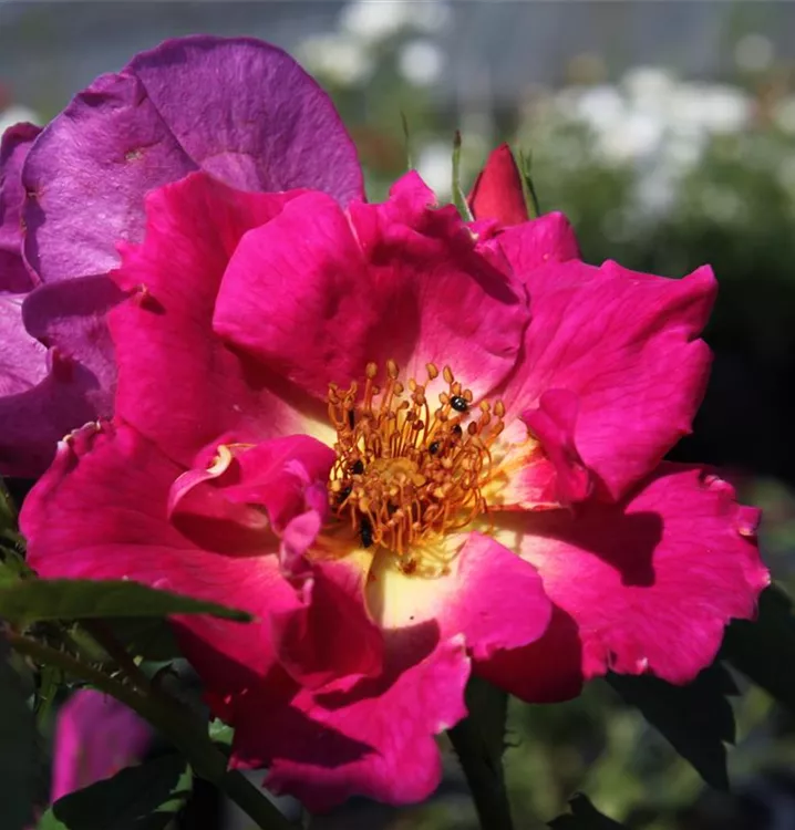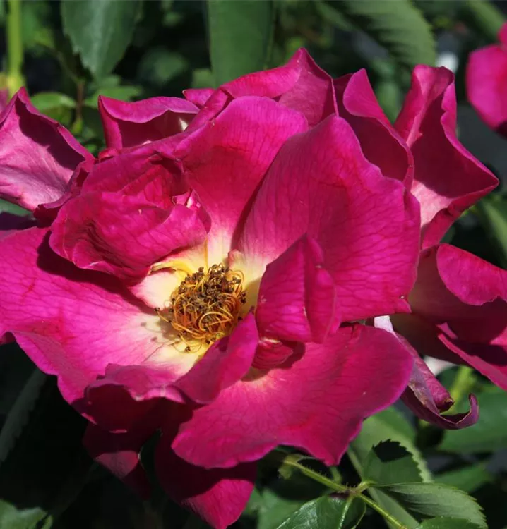 Die Bodendeckerrose 'Weg der Sinne'® (Rosa) ist eine reichblühende Rose, die im Garten eine besondere Rolle spielt. Die zahlreichen Blüten sind purpurviolett und erscheinen von Juni bis Oktober. Ihr wunderbarer Duft entfaltet sich besonders an sonnigen, warmen Tagen. Mit den richtigen Begleitern an ihrer Seite, kommt die Königin der Blumen besonders gut zur Geltung. Niedrige Stauden, Lavendel und Salbei eignen sich ganz gut für diese Zwecke.