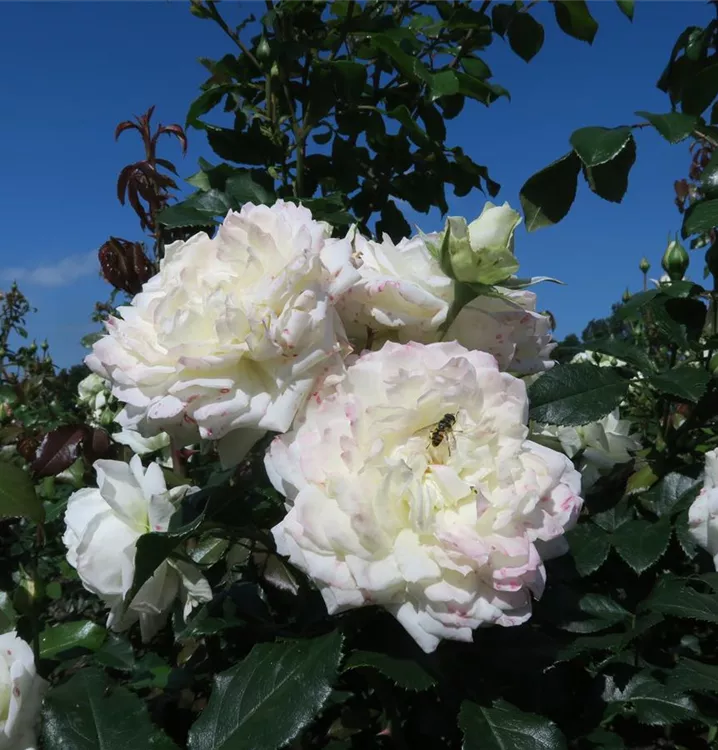 Die Kletterrose 'Alaska'® (Rosa) ist eine reichblühende Rose, die im Garten eine besondere Rolle spielt. Die zahlreichen gefüllten Blüten sind weiß und erscheinen von Juni bis Oktober. Ihr wunderbarer Duft entfaltet sich besonders an sonnigen, warmen Tagen. Mit den richtigen Begleitern an ihrer Seite, kommt die Königin der Blumen besonders gut zur Geltung. Niedrige Stauden, Lavendel und Salbei eignen sich ganz gut für diese Zwecke.