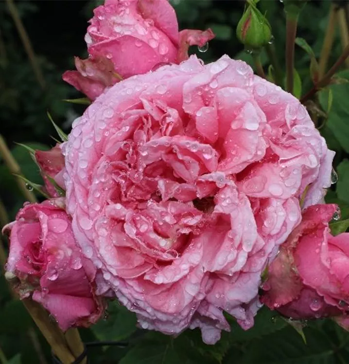Die Kletterrose 'Bienvenue'® (Rosa) ist eine reichblühende Rose, die im Garten eine besondere Rolle spielt. Die zahlreichen starkgefüllten Blüten sind rosa und erscheinen von Juni bis Oktober. Ihr wunderbarer Duft entfaltet sich besonders an sonnigen, warmen Tagen. Mit den richtigen Begleitern an ihrer Seite, kommt die Königin der Blumen besonders gut zur Geltung. Niedrige Stauden, Lavendel und Salbei eignen sich ganz gut für diese Zwecke.