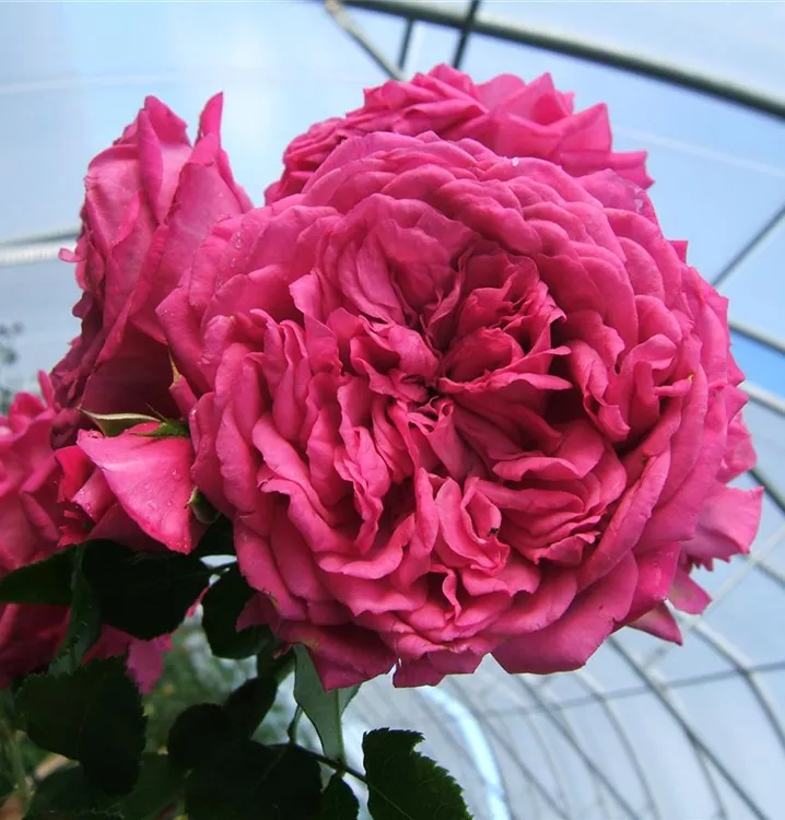 Die pinken, schalenförmigen Blüten sind starkgefüllt und erscheinen von Juni bis Oktober. Diese werden etwa 8 - 10 cm groß und sind stark duftend.