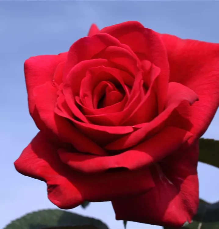 Die roten, schalenförmigen Blüten sind starkgefüllt und erscheinen von Juni bis September. Diese werden etwa 9 - 11 cm groß und sind angenehm duftend.