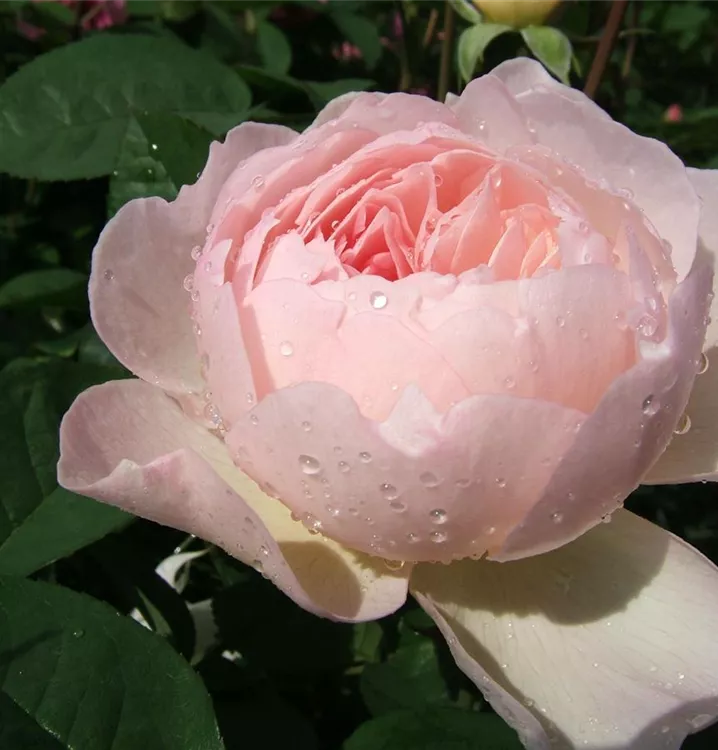 Die Englische Strauchrose 'Gentle Hermione'® (Rosa) ist eine reichblühende Rose, die im Garten eine besondere Rolle spielt. Die zahlreichen starkgefüllten Blüten sind rosa und erscheinen von Juni bis Oktober. Ihr wunderbarer Duft entfaltet sich besonders an sonnigen, warmen Tagen. Mit den richtigen Begleitern an ihrer Seite, kommt die Königin der Blumen besonders gut zur Geltung. Niedrige Stauden, Lavendel und Salbei eignen sich ganz gut für diese Zwecke.