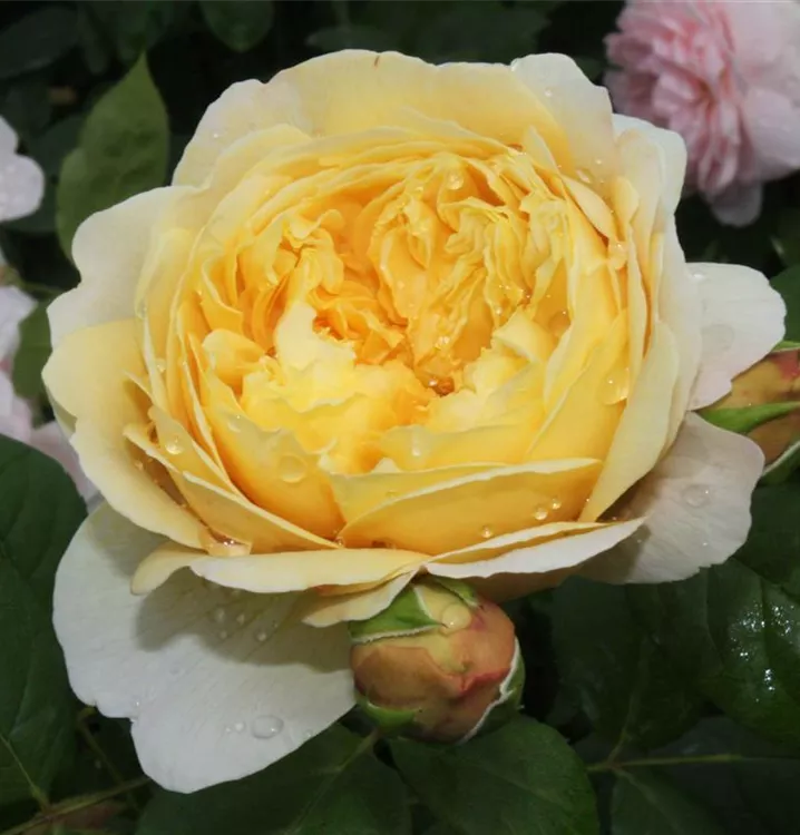 Die Strauchrose 'Charles Darwin'® (Rosa) ist eine reichblühende Rose, die im Garten eine besondere Rolle spielt. Die zahlreichen starkgefüllten Blüten sind gelb und erscheinen von Juni bis Oktober. Ihr wunderbarer Duft entfaltet sich besonders an sonnigen, warmen Tagen. Mit den richtigen Begleitern an ihrer Seite, kommt die Königin der Blumen besonders gut zur Geltung. Niedrige Stauden, Lavendel und Salbei eignen sich ganz gut für diese Zwecke.