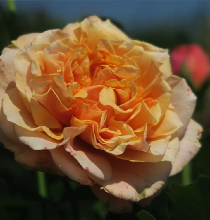 Die Strauchrose 'La Villa Cotta'® (Rosa) ist eine reichblühende Rose, die im Garten eine besondere Rolle spielt. Die zahlreichen starkgefüllten Blüten sind weiß, rot, rosa, gelb-orange und erscheinen von Juni bis Oktober. Ihr wunderbarer Duft entfaltet sich besonders an sonnigen, warmen Tagen. Mit den richtigen Begleitern an ihrer Seite, kommt die Königin der Blumen besonders gut zur Geltung. Niedrige Stauden, Lavendel und Salbei eignen sich ganz gut für diese Zwecke.