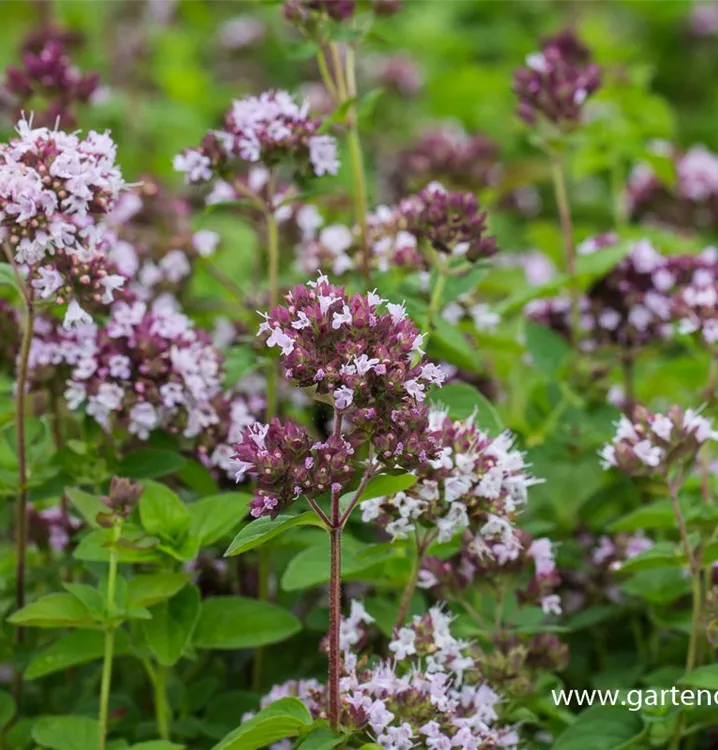 Der Oregano (Origanum vulgare) ist eine angenehm duftende Kräuterpflanze mit einem aromatischen, würzigen Geschmack. Seine mittelgrünen Blätter sind eiförmig, lanzettlich und gewellt, bewimpert. Für das optimale Wachstum des Oreganos werden ein sonniger Standort und durchlässiger, nährstoffreicher Boden benötigt.